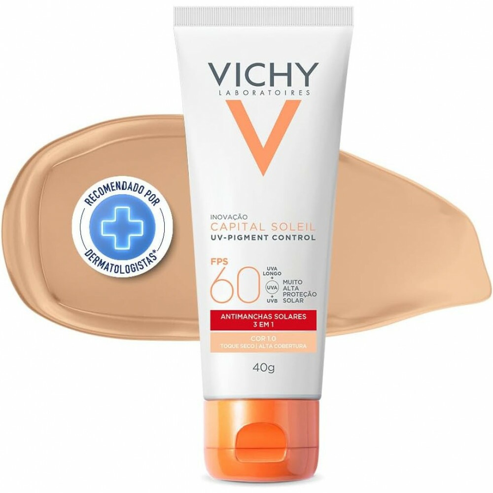 Capital Soleil UV-Pigment Control 40g de Vichy é um protetor solar anti manchas solares com alta cobertura. Fotoproteção diária avançada contra os efeitos dos raios UVA e UVB, redução de manchas solares, prevenção de hiperpigmentação e uniformização da pele com alta cobertura. Textura gel creme com toque seco