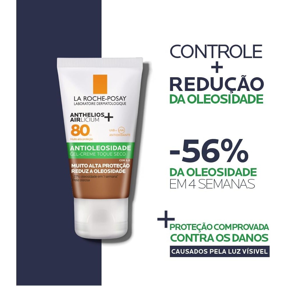 Controla e Reduz a oleosidade da pele; Proteção comprovada contra pigmentação causada pela luz visível; Controle imediato da oleosidade. Textura gel creme leve com toque seco e rápida absorção; Textura que não pesa, não escorre e não craquela. Cobertura uniforme ao longo do dia e sem transferência de cor; Alta proteção UVB/UVA (FPS 80 / PPD33).